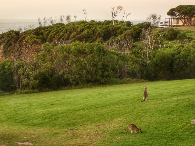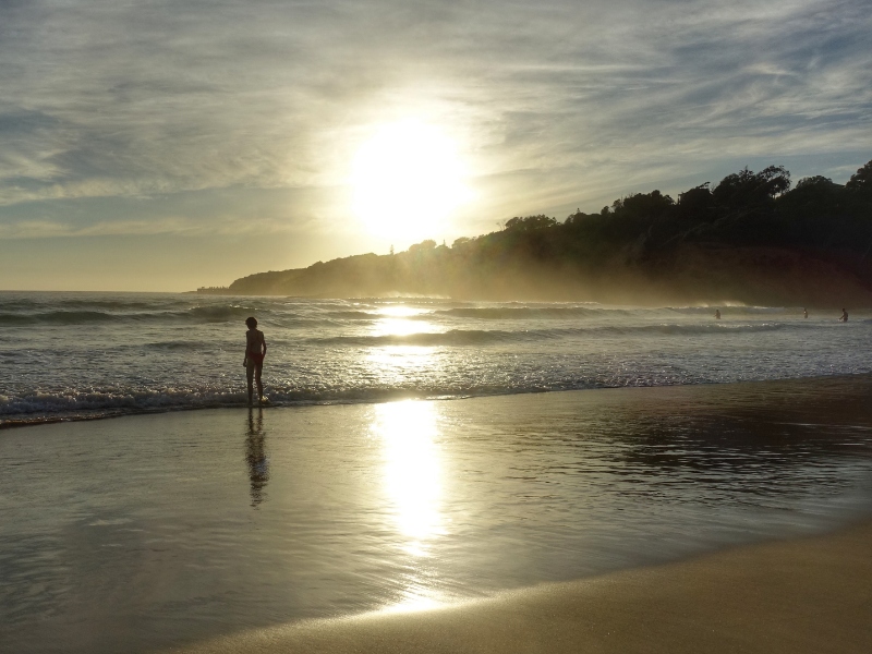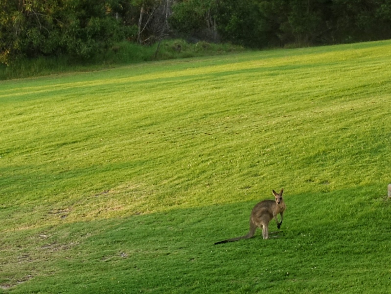 Diese begannen mit einem kitschigen Sonnenaufgang und diesem schönen Morgen wurde die Krone durch den Besuch zweier Kängurus fast unter unserem Fenster aufgesetzt. Da konnten wir gar nicht anders und machten uns noch vor dem Frühstück auf zum Strand, um die Wassertemperatur in der Morgensonne zu testen.