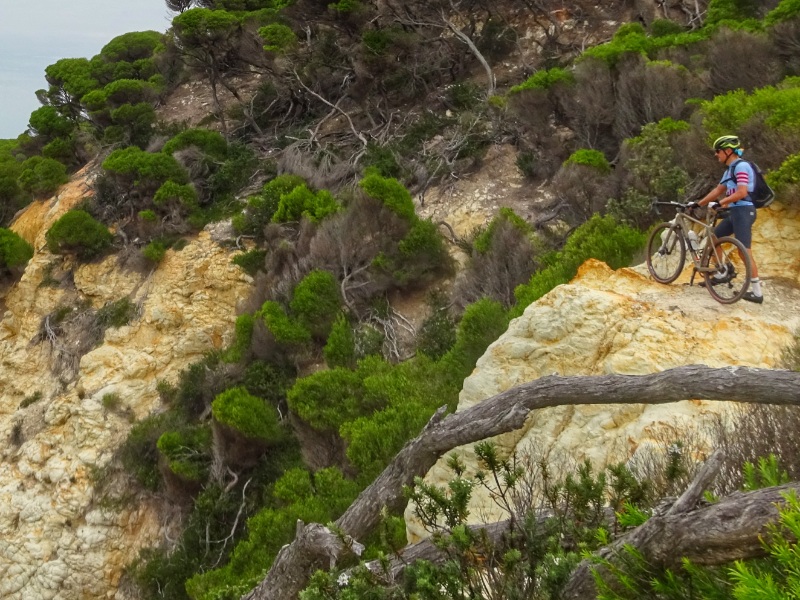 Nach einer Stärkung in unserem hiesigen „Stammcafé“, dem „Wild Orchid Café„, und einer kurzen Erholungspause starteten wir auf unseren Gravelbikes zu einer Erkundungstour entlang der Küste. Ziele waren 3 einsame Buchten, bzw. Aussichtspunkte, die theoretisch mit dem Bike zu erreichen sein sollten. Bei Zweien haben wir das auch geschafft, beim Dritten endete der Weg unvermittelt in der Wildnis.