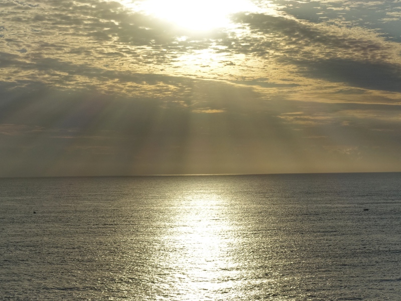 Die Temperatur war ganz in Ordnung (21°C)), aber die Brandungswellen waren so stark, dass an normales Baden oder gar Schwimmen nicht zu denken war. Trotz der frühen Stunde waren schon einige Surfer im Wasser, die mehr oder weniger geduldig auf die perfekte Welle warteten.