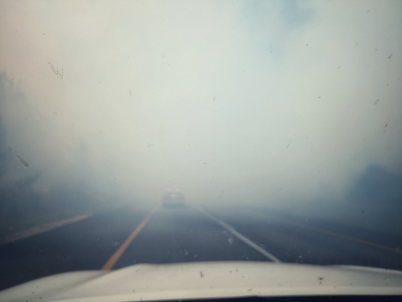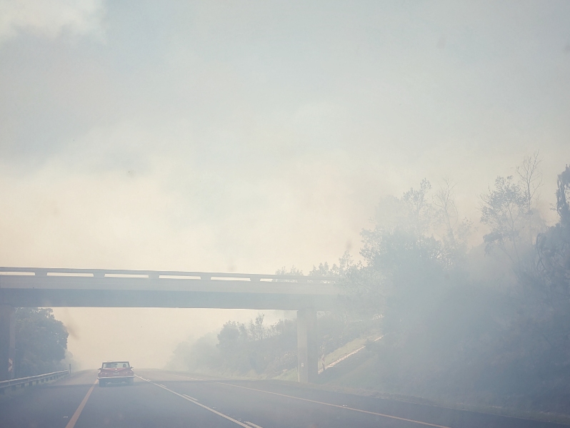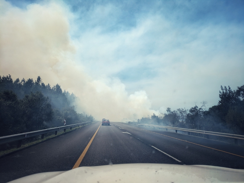Die Fahrt nach Francis Bay führte uns unter anderem durch das Tsitsikama Gebirge und den gleichnamigen Nationalpark. Der zweifelhafte Höhepunkt war, dass wir sehr dicht an einem Buschbrand vorbeifuhren. Für einige Minuten war dass ein ziemlich gespenstiges Szenario. Aber bald klärte sich die Sicht wieder auf und wir könnten unsere Fahrt ungestört fortsetzen.