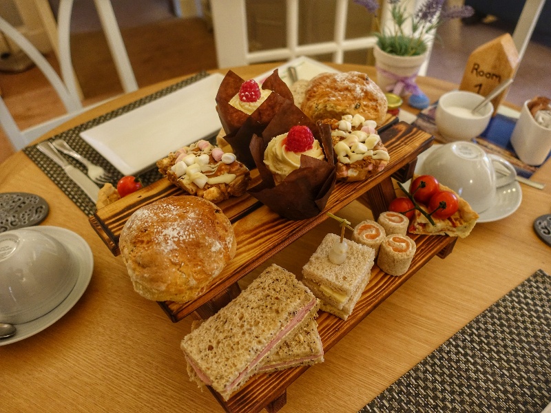 Da wir noch keinen Mietwagen haben, können wir auch zum Essen noch nicht eines der Restaurants in der Gegend ansteuern. Aber unser Gastgeber hat angeboten, uns einen klassischen High Tea / Afternoon Tea zuzubereiten und das haben wir nach der ausgezeichneten Platte gestern auch gerne angenommen.