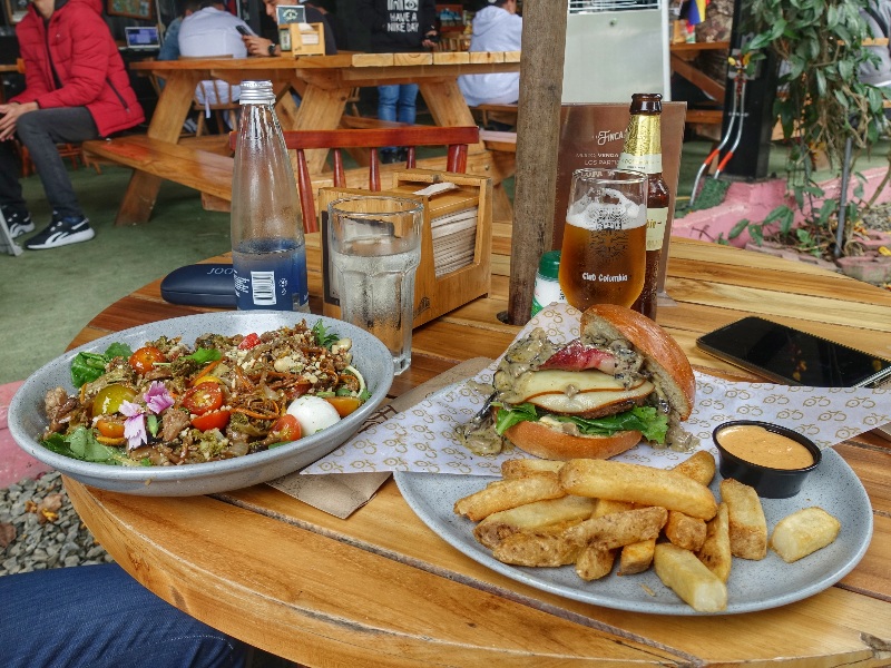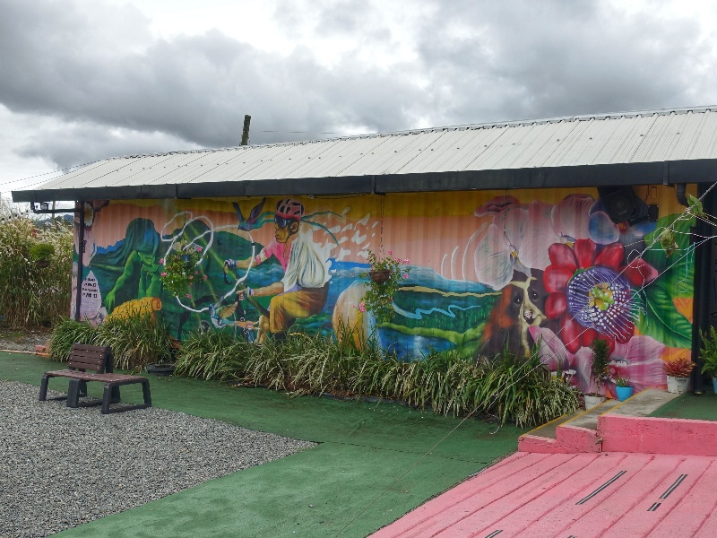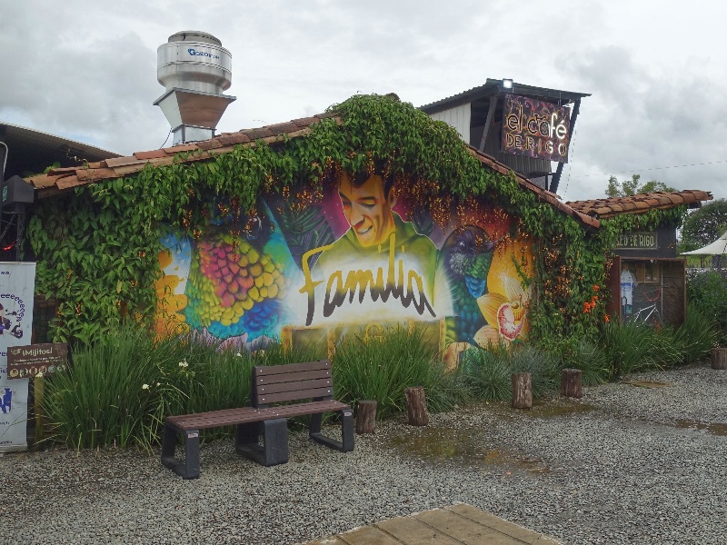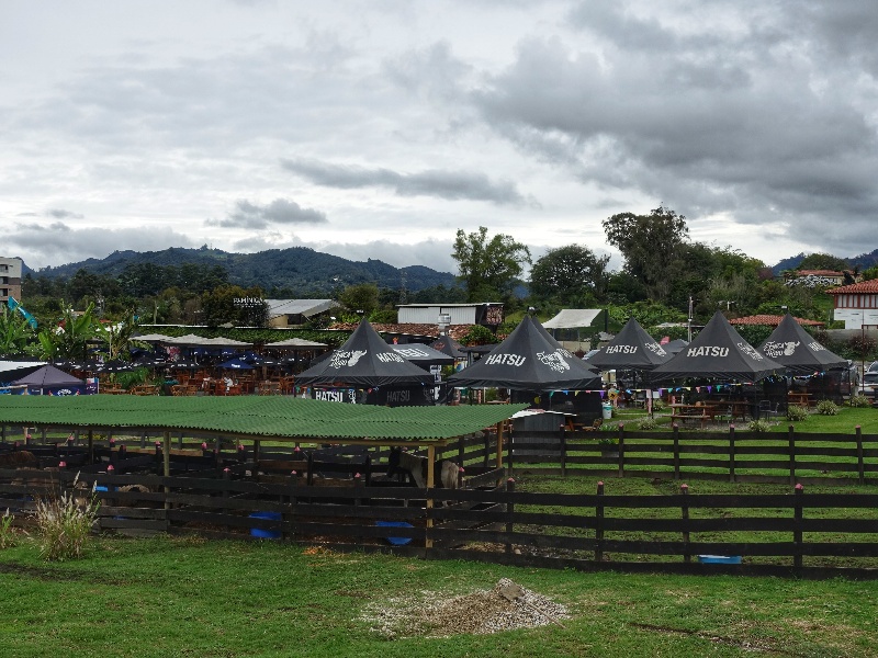 Nach einem ausgezeichneten Frühstück im Hotel, etwas Ruhe am Vormittag und der live verfolgten Niederlage Deutschlands im Viertelfinale der Fußball-EM, machten wir einen ersten kurzen Ausflug in die unmittelbare Nähe des Hotels. Dort hat der kolumbianische Rennradprofi und Nationalheld Rigoberto Uran einen kleinen Freizeitpark mit Spielplätzen, Restaurant und Biergarten, Fahrradwerkstatt und Sportgeschäft gegründet, wo er sich bzw. seinen Namen vermarktet. Dazu hat er auch allen Grund, denn mit der Silbermedaille bei den Olympischen Spielen in London 2012, zwei zweiten Plätzen beim Giro d’Italia und einem zweiten Platz bei der Tour de France, war er außerordentlich erfolgreich. Nach dieser Saison wird er wohl sein Rennrad an den berühmten Nagel hängen.