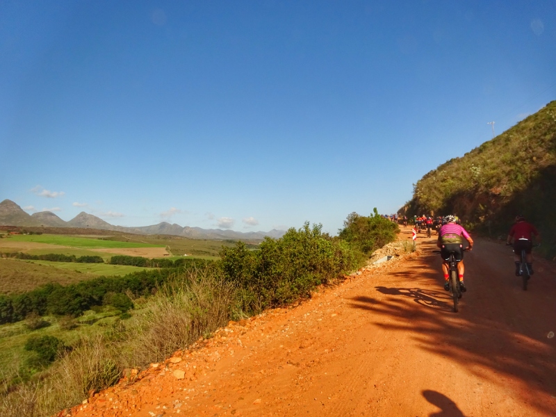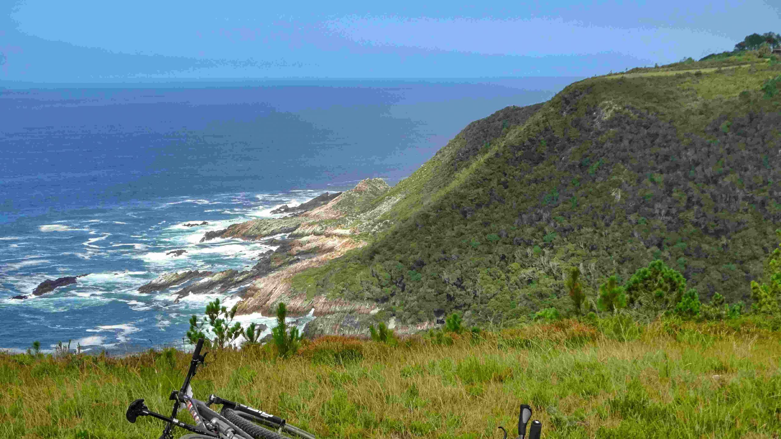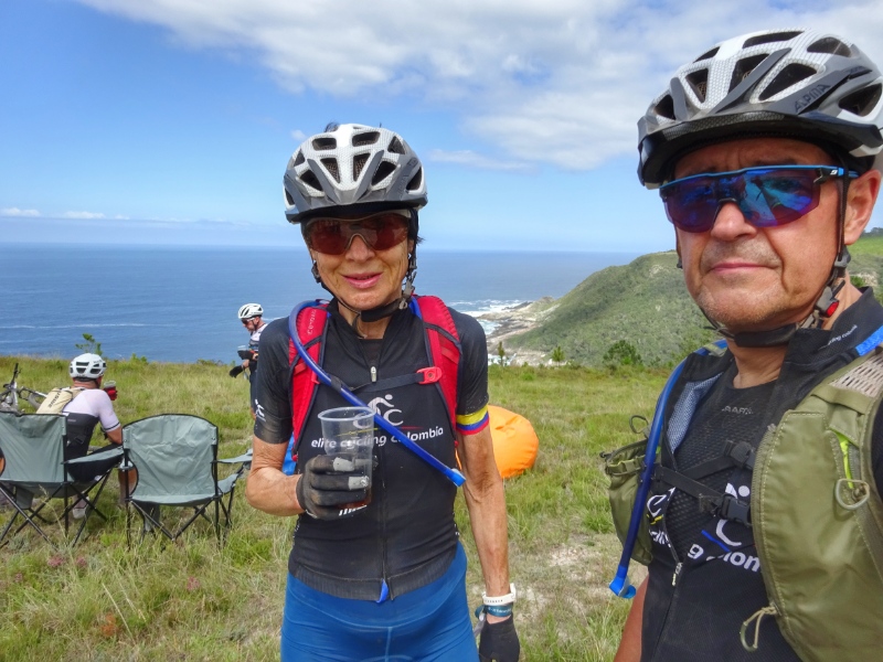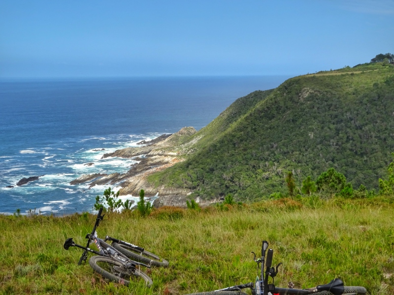 Das Mountainbiken ist hier zwar sehr abwechslungsreich und es bieten sich immer wieder tolle Ausblicke, aber aufgrund des oft losen und steinigen Untergrunds sowie der vielen extrem steilen „Kicker“ ziemlich anstrengend. Die Hitze tat ihr übriges. Aber als wir dann den Verpflegungspunkt direkt an der Steilküste erreichten, nahmen wir uns die Zeit, den Ausblick zu genießen und wurden für alles entschädigt.