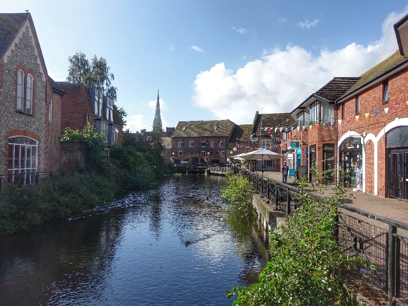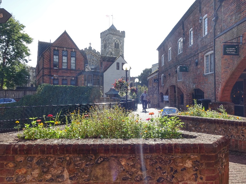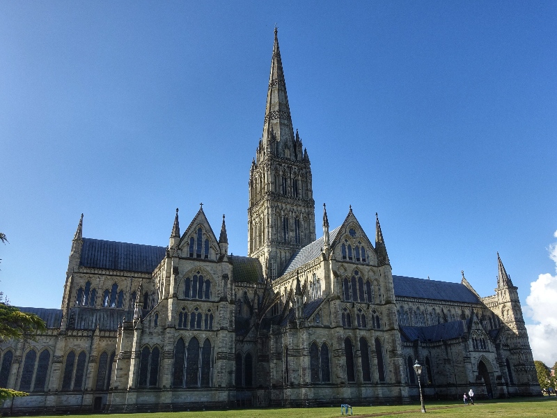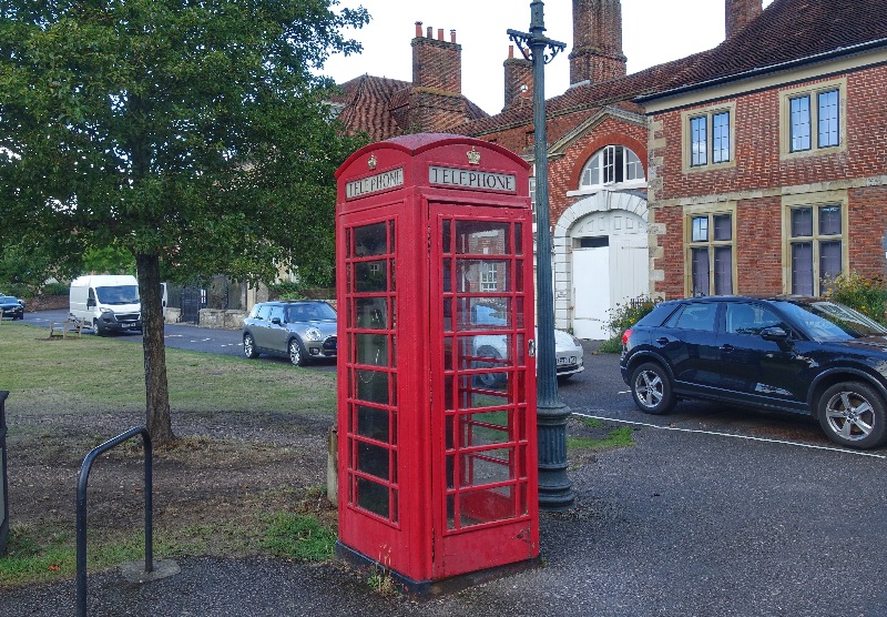 Wie auf Kommando riss genau nach dem Frühstück der Himmel auf und wir hatten etwas Zeit bis zum nächsten Wolkenbruch, um dem Zentrum von Salisbury und eben der berühmten Kathedrale einen Besuch abzustatten. Ein sehr schöner Ort mit vielen gut erhaltenen Bauten des Mittelalters, aber auch neuerer Natur, die inzwischen aber auch schon historischen Wert haben, wie diese aus der Zeit gefallene rote Telefonzelle.