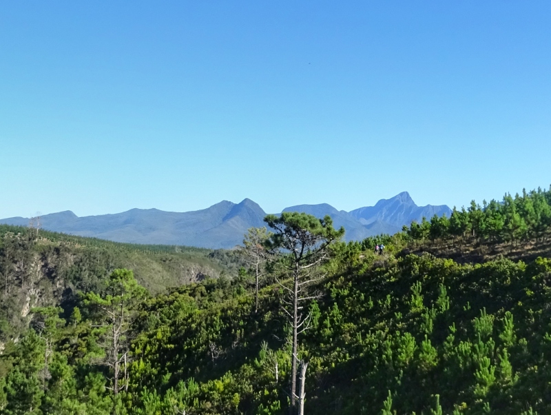 Da wir noch eine recht lange Autofahrt vor uns hatten, hielten wir uns nicht lange auf und machten uns über George auf den Weg nach Oudtshoorn. Nach George führt die Straße über die Outeniqua-Berge und dann durch die Kleine Karoo, eine sehr karge Landschaft, die von malerischen Gebirgszügen umgeben ist.