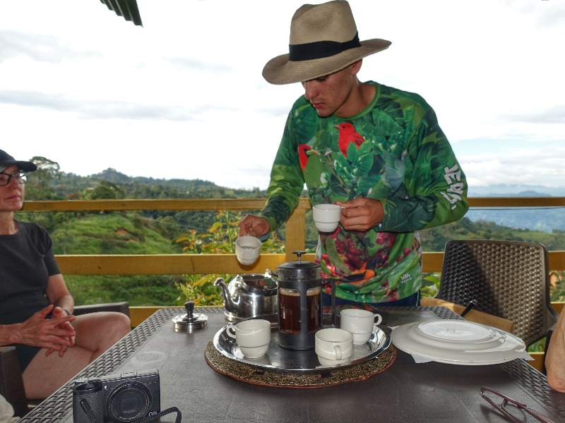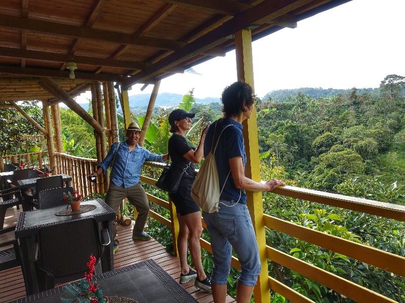 Nach dem wohlverdienten Lunch und einer erfrischenden Dusche ging es auch schon zum Besuch einer kleinen Kaffeefarm. Schon die Taxifahrt dorthin war ein Abenteuer für sich und ging über extrem steile, teilweise kaum befestigte Wege. Erinnerte uns mehr an eine Fahrt mit einem Jeep während einer Safari in Afrika, nur dass das kein Jeep sondern ein normaler PKW war. Schließlich erreichten wir die Farm und der Ausblick war atemberaubend. Es ist immer schwer zu vergleichen, aber vielleicht einer der schönsten, den wir je erleben durften.