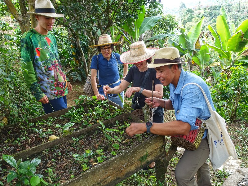 Ein junger Kolumbianer, der tatsächlich gut englisch sprach – eigentlich außer unserem Guide der erste hier, der das konnte – nahm uns in Empfang und führte uns durch den gesamten Prozess des Kaffeeanbaus bis hin zum fertigen Kaffee. Er machte das so interessant und voller Hingabe, dass wir alle ganz begeistert waren und eine jede Menge gelernt haben. Aber keine Angst, nicht alle Details meines neu erworbenen Wissens werde ich hier mit euch teilen. Nach den Fotos beschränke ich mich auf eine interessante Details.
