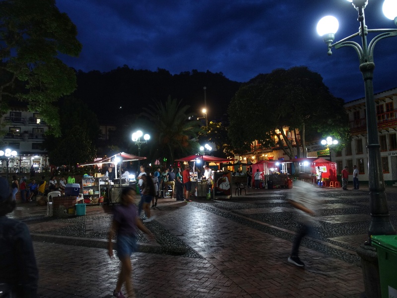 Derart aufgemuntert ging es am Abend noch ins Zentrum von Jerico zum Essen bei einem Mexikaner. Unglaublich, was auf dem Marktplatz und den angrenzenden Straßen an einem normalen Donnerstagabend los war – und das ganz ohne Touristen. Auch wenn es schon dunkel war, den Wettbewerb mit Jardin um den schönsten Ort hier hat für uns Jerico klar gewonnenen.
