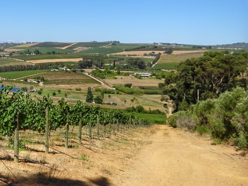 Das Devon Valley, wo wir die erste Woche dieser Reise verbringen, liegt zwischen den Bottelary Hills und dem Stellenbosch Valley. Da es am Talende keinen Straßenübergang gibt, ist es ein recht ruhiges Tal. Nur ein paar Pfade führen durch Privatgelände über die Berge in die benachbarten Gegenden.