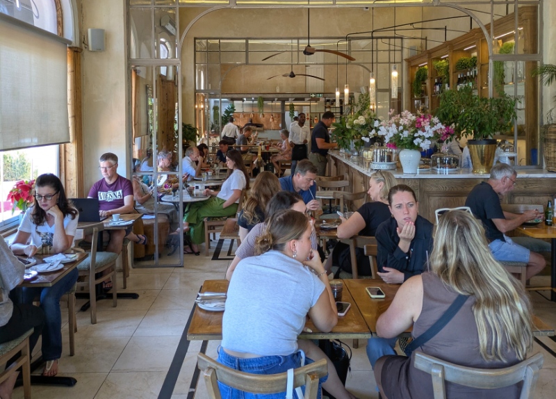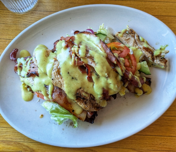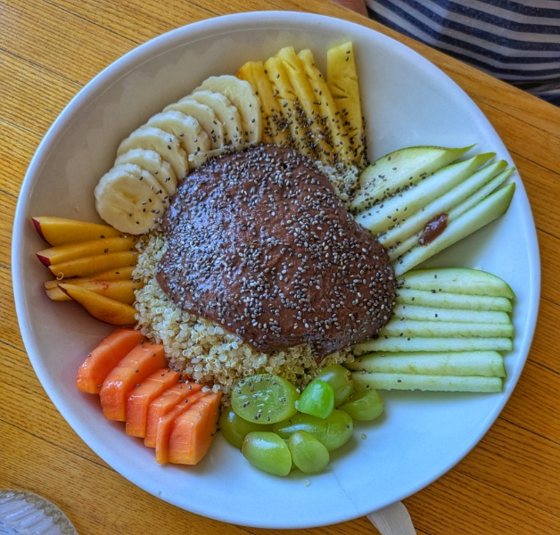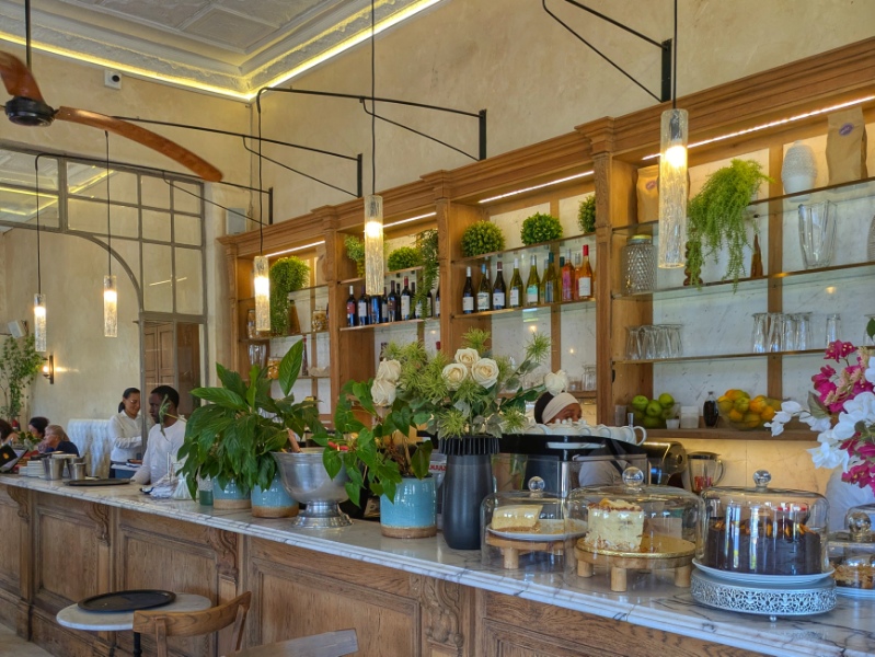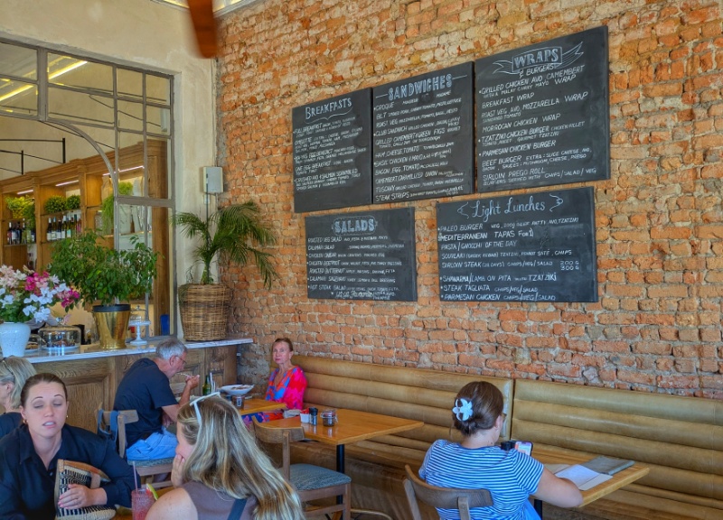 Den anschließenden Lunch hatten wir uns wohl verdient, wobei uns der Weg erneut in bekannte Gefilde führte, nämlich das Ya-Ya Café in Stellenbosch. Hier waren wir im Herbst 2024 schon mal und waren schon damals begeistert. Das Café hat wahrscheinlich die größte und beste Frühstücksauswahl der Stadt und eine eigene Bäckerei. Das Frühstück gibt es wie so oft den ganzen Tag, was uns sehr gelegen kommt. Auch diesmal wurden wir nicht enttäuscht. Utas „Raw cacao quinoa bowl“ und mein „Ya-Ya’s club sandwich“ waren der Hammer!