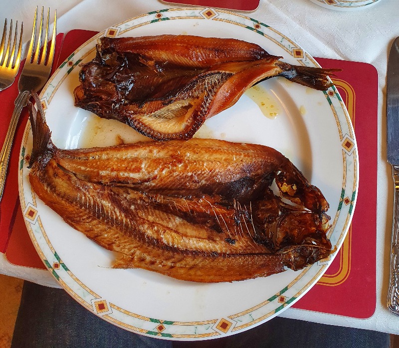 Nach einer erholsamen Nacht widmeten wir uns gleich beim Frühstück dem ersten Abenteuer und probierten beide den gegrillten „Smoked Snoek“. Das war ausgesprochen lecker, wenn auch etwas ungewohnt.