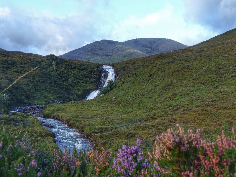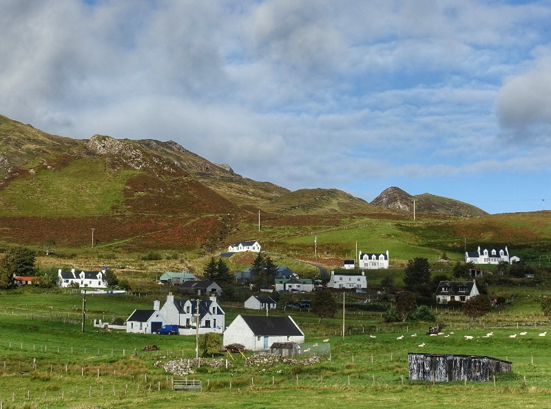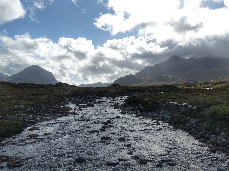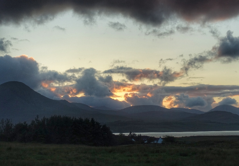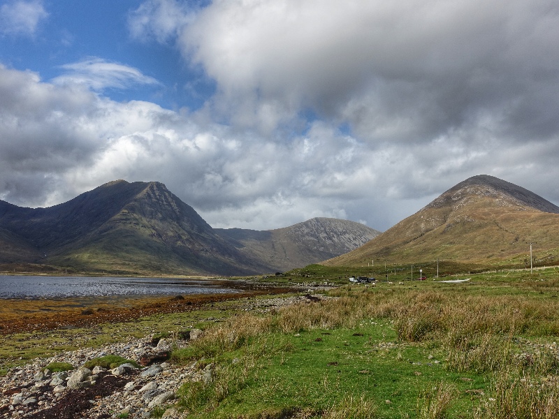 Der Plan war ja, dass wir inklusive unserem aufgrund der Bikekoffer recht umfangreichen Gepäck mit einem Taxi in Evanton abgeholt und nach Inverness zur Mietwagenstation gebracht werden sollten. Das Taxi kam schon mal eine gute halbe Stunde zu spät und war dann für unsere Zwecke auch viel zu klein. Der Fahrer rief seine Zentrale an und dann – inzwischen eine Stunde nach dem Plan – kam ein Transporter, der uns nach Inverness fuhr. Dort wurde es dann richtig kritisch. Das Reisebüro hatte uns einen Mini-VAN gebucht. Das war dann so eine Kiste, wie Handwerker sie oft fahren, vorne 2 Sitze und hinten zu, sicher groß genug für unser Gepäck, aber keine Automatikschaltung. Mal von dem sehr unüblichen Mietwagen abgesehen, ist natürlich eine Auto, wo der Schalthebel links ist, für uns Rechtsfahrer äußerst schwierig zu handhaben. Auf den engen und kurvenreichen Straßen wäre das ein echter Stressfaktor gewesen. Das haben wir dem äußerst netten Mitarbeiter der Mietwagenfirma auch klar gemacht. Wir hatten ja schließlich auch etwas anderes gebucht, als eine Handwerkerkutsche mit Schalthebel auf der „falschen“ Seite. Der legte sich dann richtig ins Zeug und überzeugte seine Chefin, dass man das den netten Deutschen nicht antun könne. Und so wurde ein KIA SEED mit Automatik hervorgezaubert, in den dann nach Umlegen der Rücksitze auch alles hinein passte. Uns fiel ein großer Stein vom Herzen und wir konnten uns endlich auf den Weg zur Isle of Skye machen.