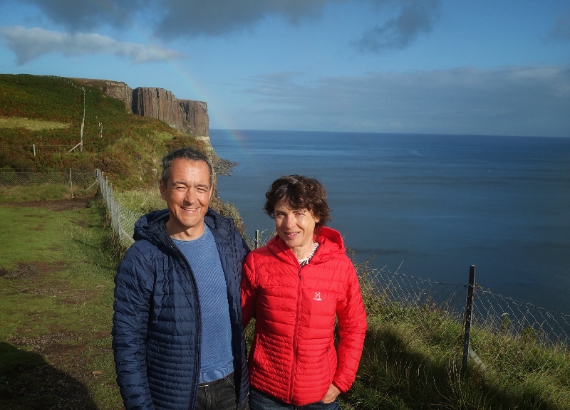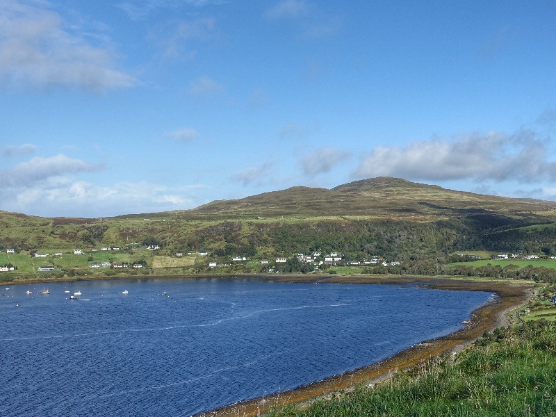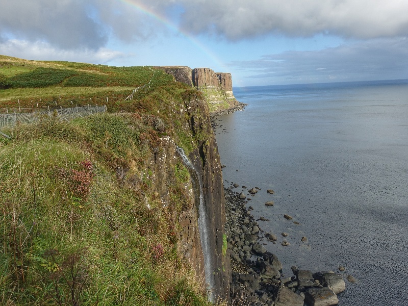 Mit dieser deftigen Grundlage versehen, machten wir uns auf den Weg, um einen Teil der Insel zu umrunden und an den besten Panoramapunkten Fotostopps einzulegen. Das Wetter spielte hervorragend mit. Die Sonne kam immer wieder durch die manchmal dunklen, manchmal hellen Wolken und sorgte so für ausgezeichnetes Licht. Die Landschaft hier ist wirklich beeindrucknd schön und am ehesten mit der Gegend der Fjorde in Norwegen zu vergleichen. Ein bißchen Angst hatten wir vor zu starkem Touristenandrang. Aber erstens ist es ja schon fast Ende September und zweitens halten sich die gemeinen Touristen auch meist nur an den bekannten und leicht zu erreichenden Sehenswürdigkeiten auf. Diese Ziele wie Kilt Rock, Old Man of Storr und die Brücke von Sligachan nahmen wir zwar auch mit, aber wie umfuhren noch auf einer kleinen Straße die nördlichste Spitze mit dem Duntulm Castle und waren dort fast alleine. Die Bildersammlung habe ich wieder in einer Galerie zusammengefasst.