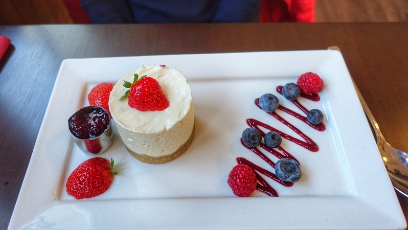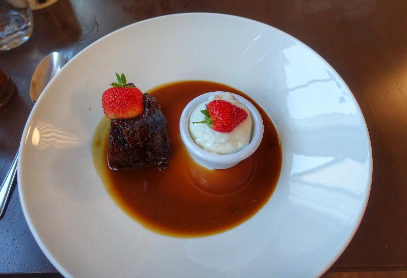 Das Essen war der Hammer! Scallops als Hauptspeise und zum Dessert gab es Sticky Toffee Pudding in Butterscotch Sauce sowie Gaelic Whisky and Honey Cheesecake.