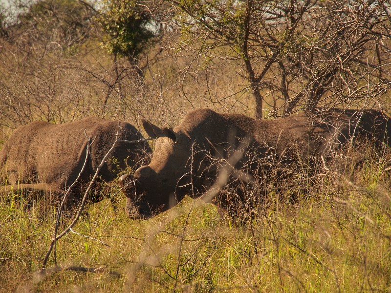 Als dann auch noch eine Gruppe von 4 weißen Nashörnern auftauchte, war die Ausfahrt auch für die anderen gerettet. Warum die Kameraden weiße Nashörner heißen, kann man nicht sagen. Sie sind genauso schwarz wie ihre größeren Kollegen, die man schwarze Nashörner nennt. Unterscheiden tun sie sich neben der Größe insbesondere in der Form der Lippen und der Ohren.
