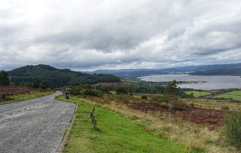 Anschließend ging es lange Zeit über kleine und einsame Straßen in ständigem Auf-und Ab durch das Herz der Highlands. Es gab immer wieder kräftige Schauer mit Sturmböen, aber auch sonnige Abschnitte. Die Landschaft ist echt beeindruckend, sehr rauh, schon fast kitschig genau wie in den einschlägigen Filmen. Zum Umschauen hatten wir schon genug Gelegenheit, zum Fotografieren erst beim ersten Verpflegungspunkt.