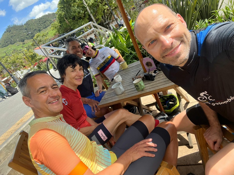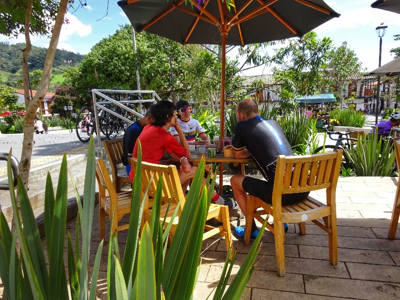 Bei bestem Wetter machten wir uns um kurz nach 9 Uhr auf den Weg, um in dem 15 km und 200 hm entfernten kleinen Ort El Retiro einen Kaffee zu trinken. Die Idee zu einer Radtour hatten aber offensichtlich nicht nur wir, sondern deutlich über 100 Radsport begeisterte Kolumbianer, die ich auf der doch recht kurzen Strecke zählte. Wie gesagt, dass ist wirklich Volkssport hier. Dabei ist die Atmosphäre sehr entspannt, sowohl unter den Radlern, als auch mit den Autofahrern.