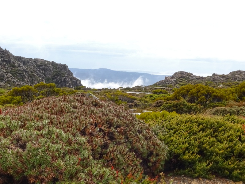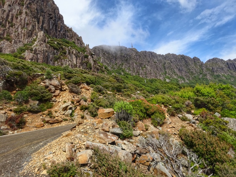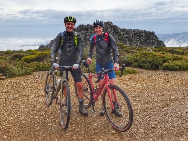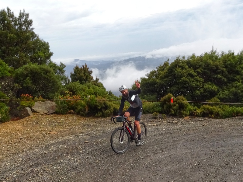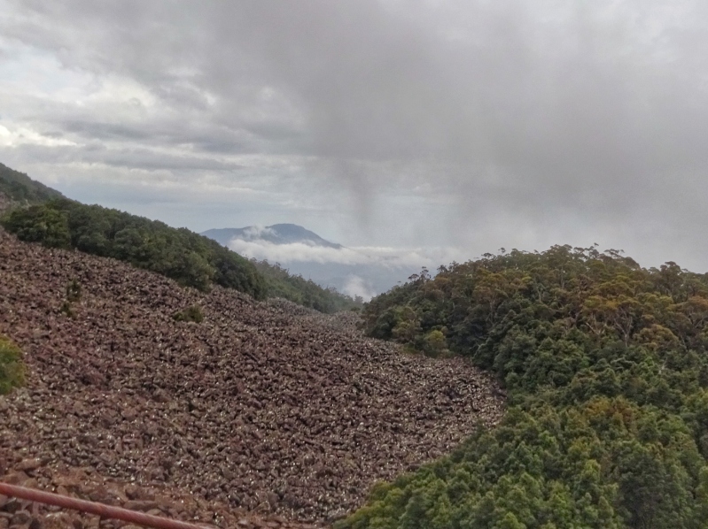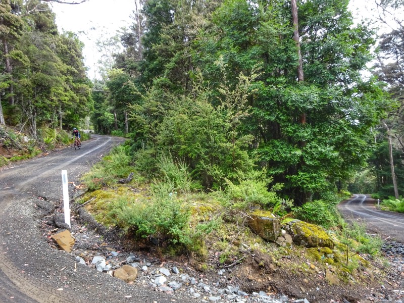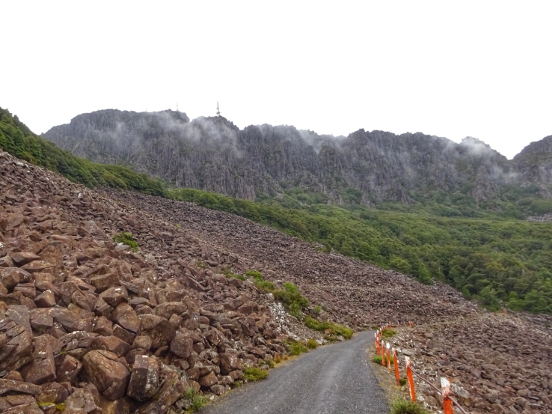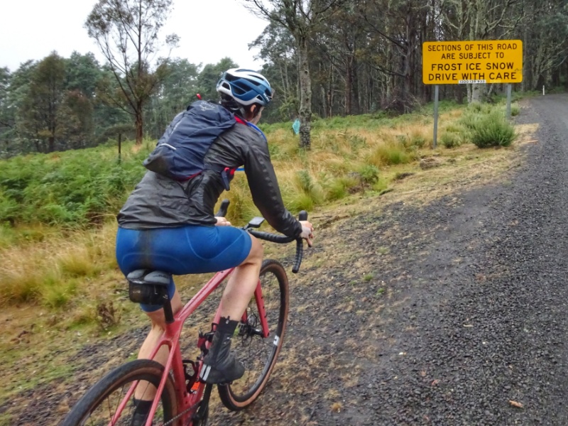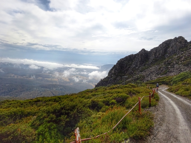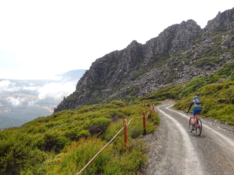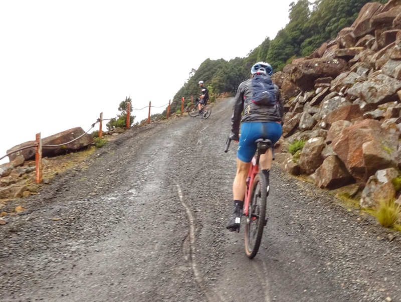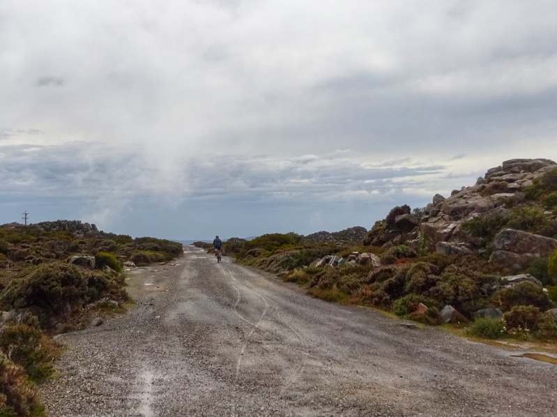 Heute Morgen nun wiederholte sich, was wir schon bein unseren letzten großen Touren oft hatten: es regnete heftig. So waren wir schon nass, bevor es überhaupt richtig los ging. Und los ging es mit einem langen und sowohl am Beginn als auch zum Ende hin sehr steilen Anstieg mit Steigungsprozenten um die 15 und bis zu 20 % auf den Mount Barrow.
