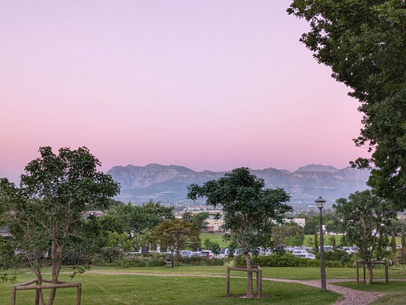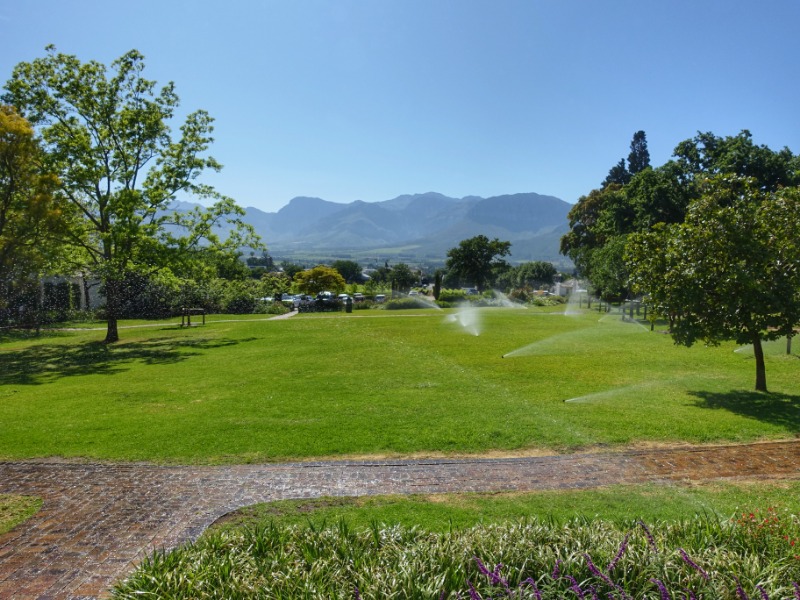 Die Fahrt vom Flughafen Kapstadt nach Paarl in die Wineland gestaltete sich trotz dichtem Verkehr recht stressfrei. Gerade noch rechtzeitig vor der Schließzeit der Rezeption und zum Sonnenuntergang erreichten wir das Laborie Wine Estate, unsere erste Station.