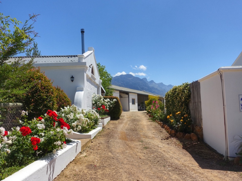 Unser Cottage liegt ca. 20 Autominuten von Tulbagh entfernt, abseits der Hauptstraße und ist nur über eine unbefestigte Schotterstraße zu erreichen. Belohnt wird man für die Mühe der Anreise mit herrlicher Ruhe, tollen Ausblicken und einem sehr schönen und großen Ferienhaus.