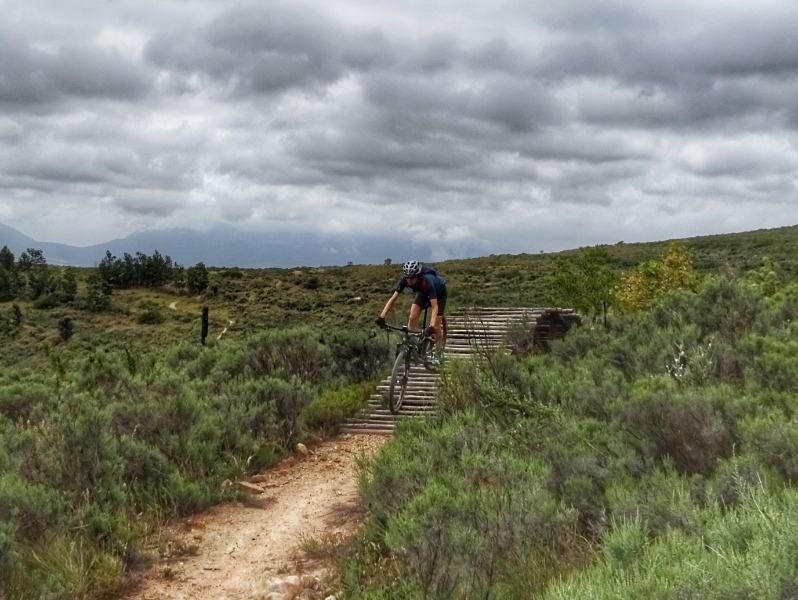 Natürlich haben wir auch diese Station der Reise nicht ohne den Hintergedanken gewählt, dass man hier aufgrund der oben beschriebenen geografischen Lage doch hervorragend Mountainbike fahren können müsste. Und so ist es auch. Die lokale Community hat ein paar tolle und sehr herausfordernde Trails an die Hänge der Berge gezaubert, so dass sogar das berühmte Cape Epic Rennen hier schon Station machte. Grund genug für uns, diese Trails auszuprobieren.