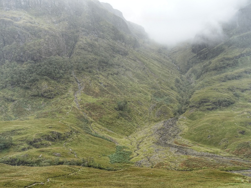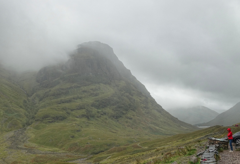 Auf dem Weg zu unserer letzten Station in Stirling mussten wir heute Morgen wieder über den Glencoe Pass fahren (ihr erinnert euch, das ist der Brenner Schottlands) . Aber im Gegensatz zu gestern schien heute nicht die Sonne, die Wolken hingen sehr tief und es nieselte. Natürlich sah die Landschaft ganz anders aus. Wir haben keine Mühe gescheut, um euch auch davon ein paar Fotos präsentieren zu können, denn das ist wohl eher, was man zu erwarten hat, wenn man hier unterwegs ist.