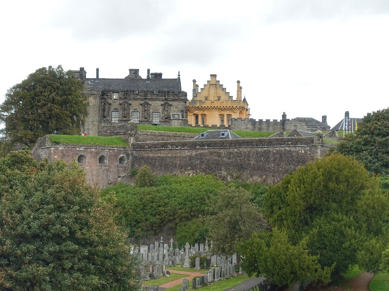 Sterling Castle liegt strategisch wichtig im Zentrum Schottlands und war daher oft umkämpft. Sie liegt nahezu uneinnehmbar auf dem Castle Hill mit seinen steilen, felsigen Hängen. Im 13. und 14. Jahrhundert bekriegten sich Engländer und Schotten nahezu pausenlos und daher wechselte auch sehr oft der Besitzer der Burg, je nach nachdem wer gerade die Oberhand im Konflikt hatte. Im 16. Jahrhundert wurde sie dann zur Residenz der schottischen Könige. Heute stürmen nur noch Toursitenmassen die Burg, die inzwischen zu den 20 wichtigsten Sehenswürdigkeiten Schottlands zählt. So auch wir gleich nach unserer Ankunft.