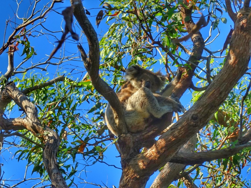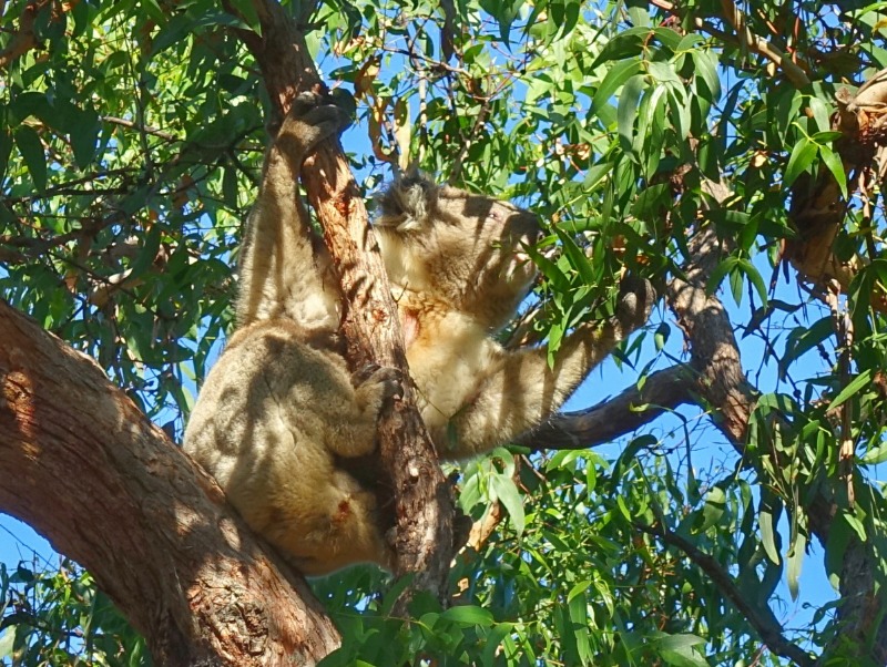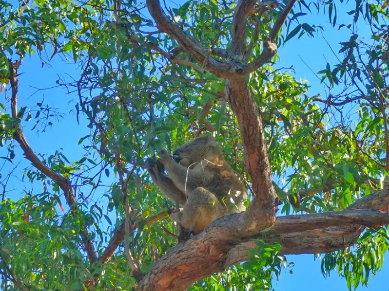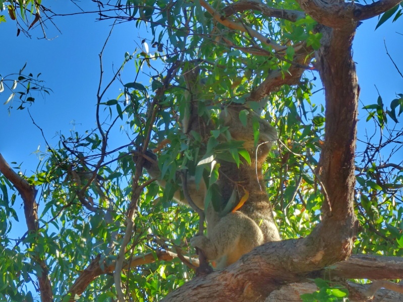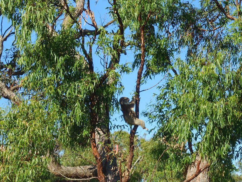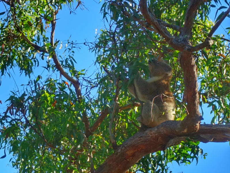 Das Besondere ist, dass es dort eine große Kolonie Koalas gibt und man fast eine Garantie hat, auf einer ca. 2 km langen Wanderung die possierlichen Beuteltiere zu erspähen, wenn man nur lange genug den Kopf in den Nacken legt.