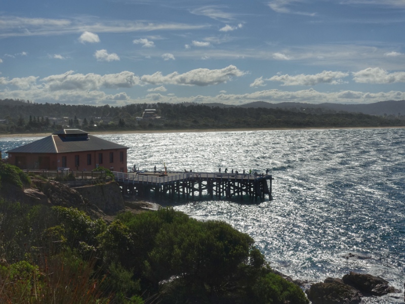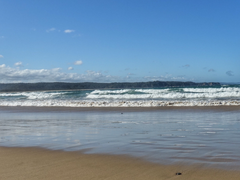 Heute nun ging es auf einer weiteren langen Etappe mehr oder weniger die Südküste Victorias und später von New South Wales entlang nach Tathra. Dabei befuhren wir einen Teil des Princes Highway, der bis Sydney geht. Wenig Verkehr, dichte grüne Wälder, viele Berge und immer wieder Blicke auf das Meer und die Seen der East-Gippsland genannten Landschaft machten die Fahrt sehr angenehm. Einige wenige kleine Orte boten Gelegenheit für die notwendigen Kaffeestopps.