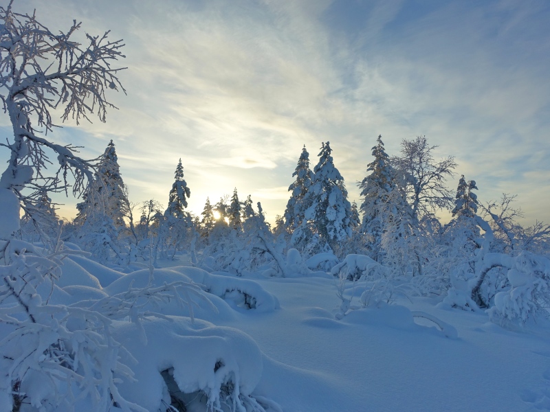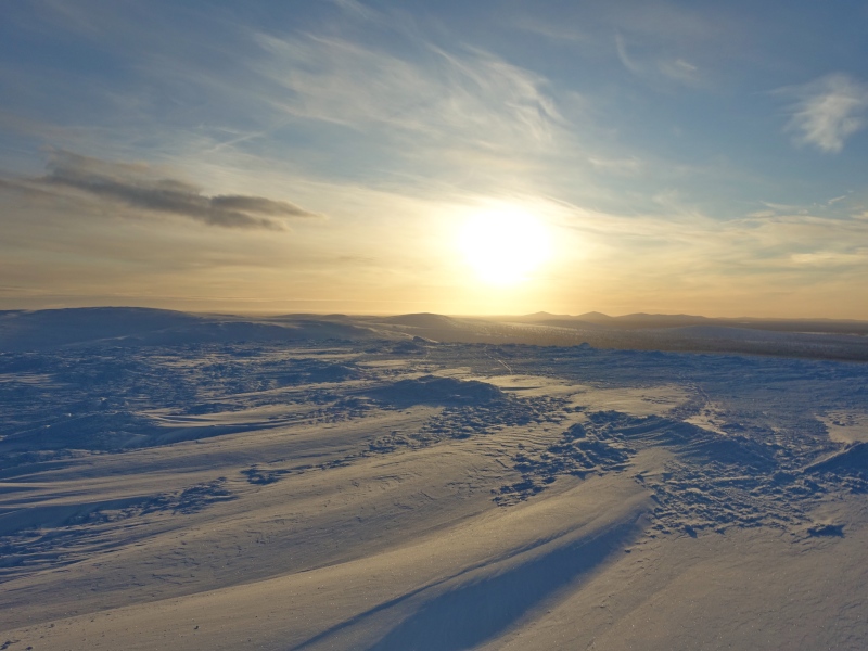Es war wieder ein phantastischer Tag im Winterwunderland! Vielleicht haben wir heute Nacht noch Glück mit einem richtigen Polarlicht. Klar ist es jedenfalls und mit -20 Grad wird es auch endlich richtig kalt.